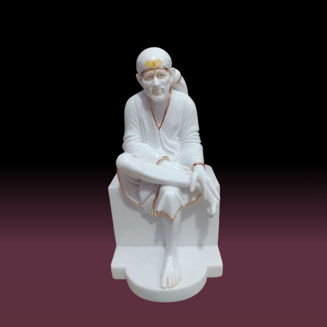 We are offering Dwarkar mai Sai Baba murti for home in pure white marble with intricate carving, a gleaming polish, and splendid paintwork done by our best artists to serve our clients.