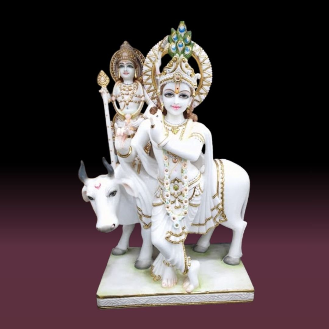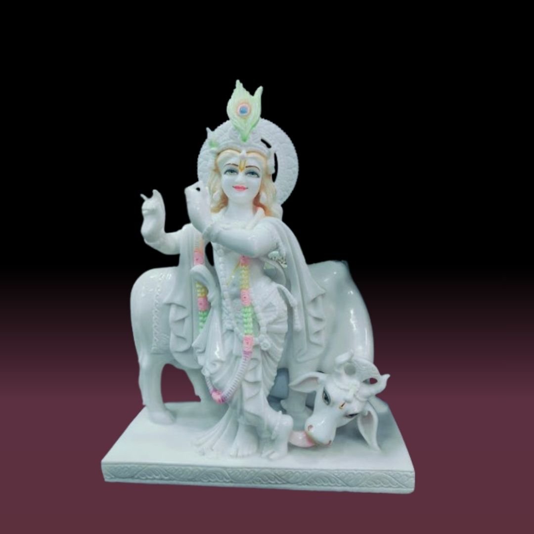 We are offering Marble Krishna Murti in pure white marble with intricate carving, a gleaming polish, and splendid paintwork done by our best artists to serve our clients.
